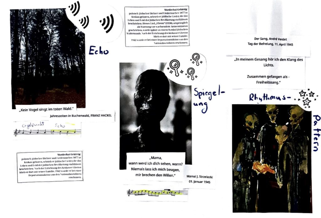 Zudem werden klangliche Erinnerungsmosaike gegen das Vergessen aufgeführt, ein Nachspüren in den Nachhall von Kunstwerken, Textfragmenten und Melodien aus Konzentrationslagern, die mithilfe von Kompositionstechniken in Klangateliers zu neuen Klangräumen miteinander verbunden werden.